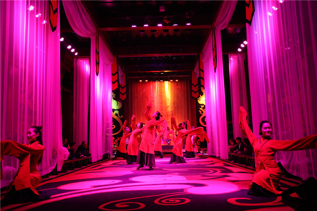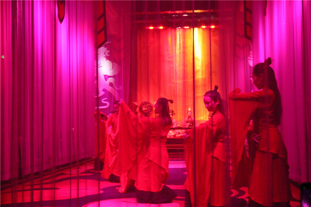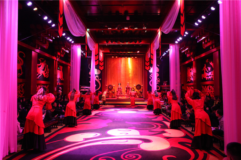 一首《琵琶舞》,展示女性婀娜多姿、美妙曲線,出于漢代。寄宿著古代年輕男子對貌美女子的喜愛與追求之情。演員們 舞姿輕靈、身美如燕、軟如云紫、步生蓮花,如潺潺流水,如深山明月,使人如飲佳釀,醉得無法自抑。