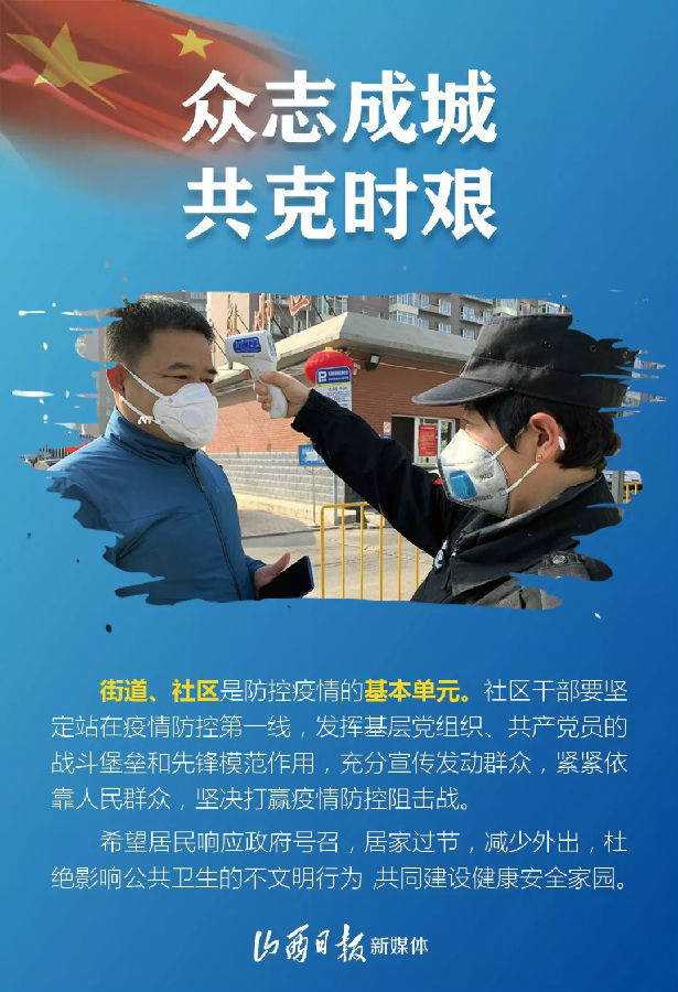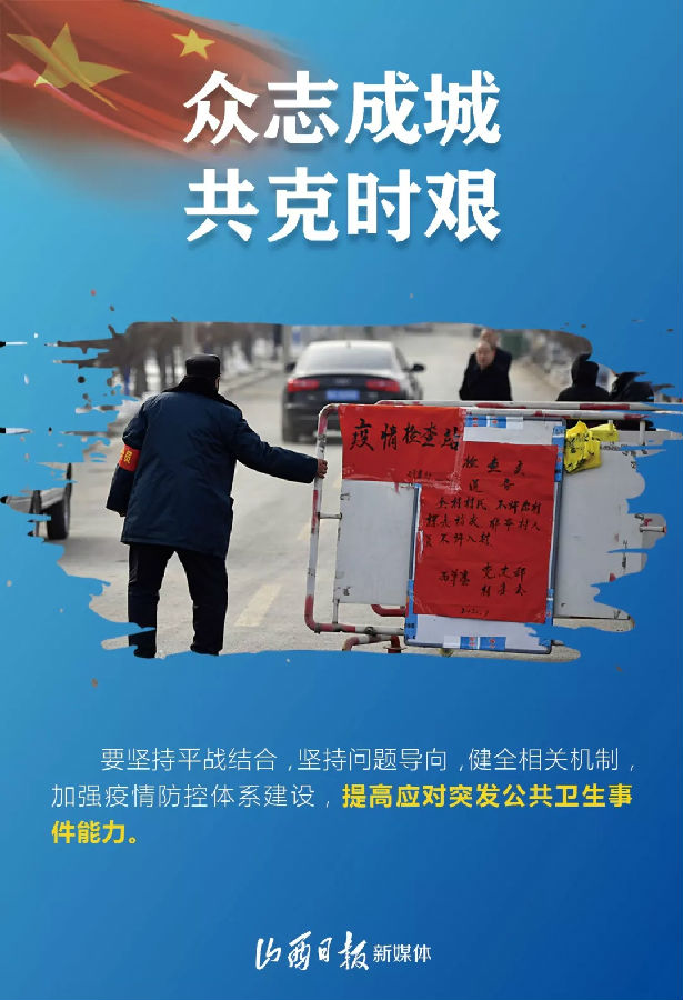 他強(qiáng)調(diào),要深入貫徹習(xí)近平總書記重要指示精神,貫徹落實(shí)黨中央決策部署,按照省委“五嚴(yán)五防”部署要求,全面落實(shí)各項防控措施,齊心協(xié)力、眾志成城,全力保山西一方平安,為全國打贏疫情防控阻擊戰(zhàn)作出貢獻(xiàn)。
