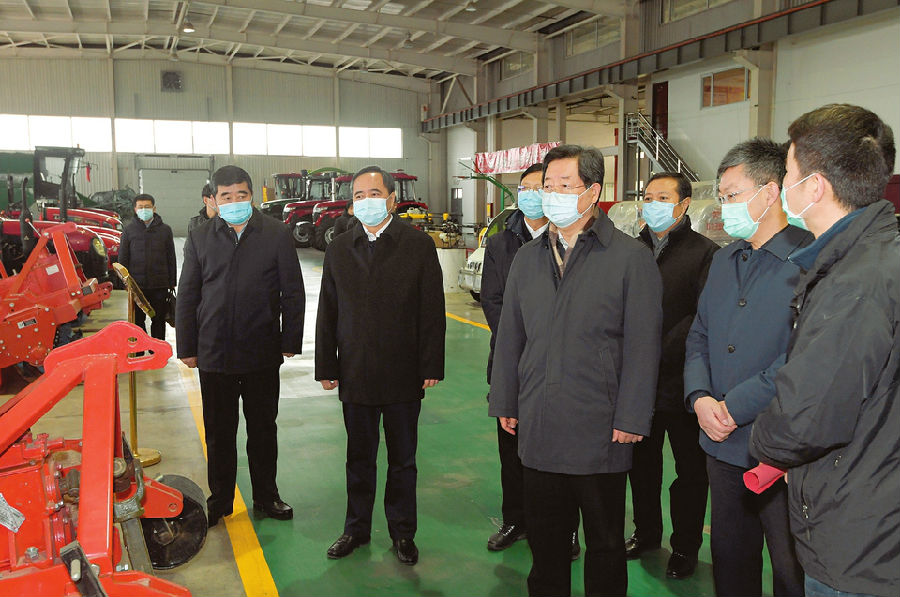 二月十四日,在榆次區東陽鎮,省委書記樓陽生來到省農機化服務中心,了解農機具備貨供應、保障春耕生產等情況。記者李聯軍攝