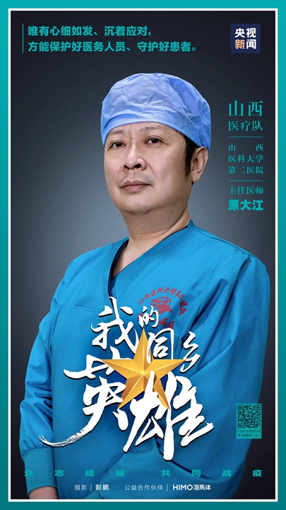 18日21時31分,央視新聞在直播“我的同鄉英雄”時,將鏡頭對準了山西醫護人員,也連線了山西醫科大學第二醫院主任醫師原大江,他說:“唯有心細如發、沉著應對,方能保護好醫務人員、守護好患者?!痹蠼錾谝粋€醫學世家,他說,我的靈魂、血液和全身的每一個細胞都滲透著對醫學事業的熱愛和對醫者職責的傳承。