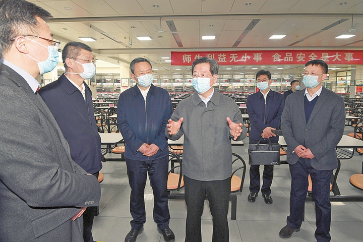 三月十八日,省委書記樓陽生在山西大學學生餐廳,考察開學準備和防控措施落實情況。記者李聯軍攝
