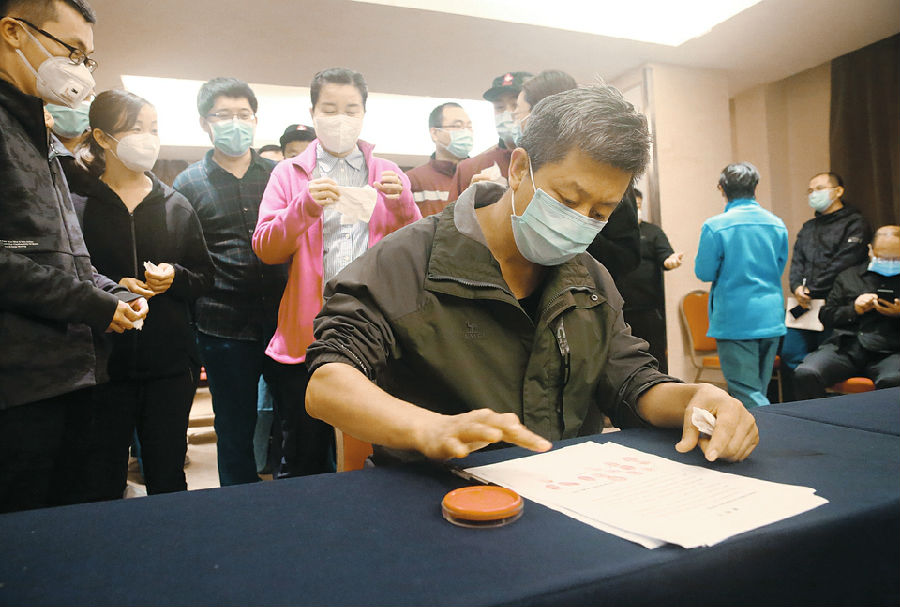 三月二十三日晚九時(shí)許,山西省國(guó)家緊急醫(yī)學(xué)救援隊(duì)隊(duì)員熱情高漲,紛紛在請(qǐng)戰(zhàn)書上簽字、按手印。本報(bào)記者王宇攝