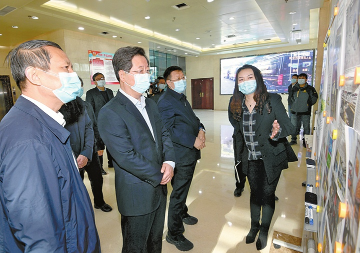在新華社山西分社,樓陽生登上新華網無人機直播車,了解導航直播平臺,結合展板、視頻,聽取山西戰“疫”、脫貧攻堅等宣傳報道及融媒體建設情況介紹,勉勵新聞工作者深入基層、深入一線,不斷增強腳力、眼力、腦力、筆力,講好山西故事,展示山西形象。