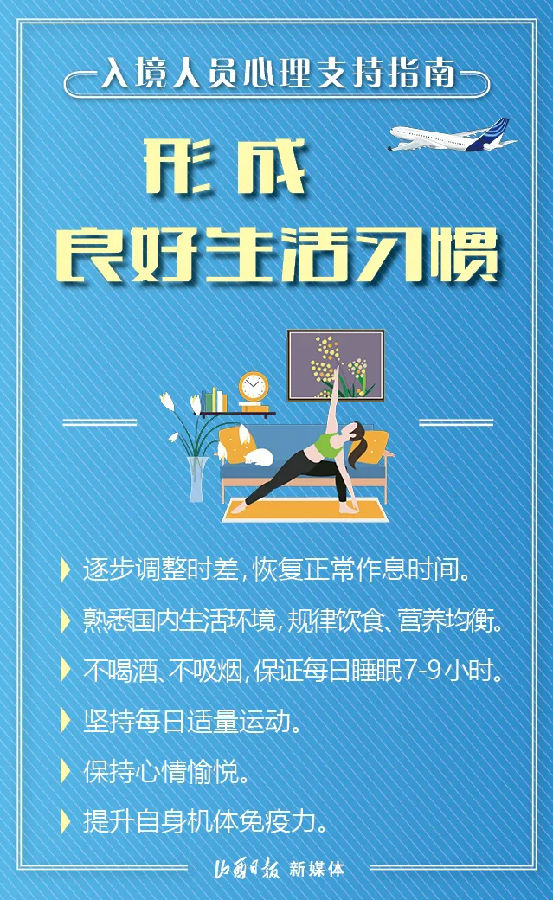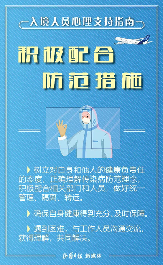 在防控新冠肺炎境外輸入工作中,做好入境人員心理疏導(dǎo)和社會(huì)工作服務(wù)十分重要。如何幫助入境人員適應(yīng)醫(yī)學(xué)觀察環(huán)境,規(guī)范自我防護(hù)行為、保持自我積極心態(tài)?六張海報(bào)講解清楚。