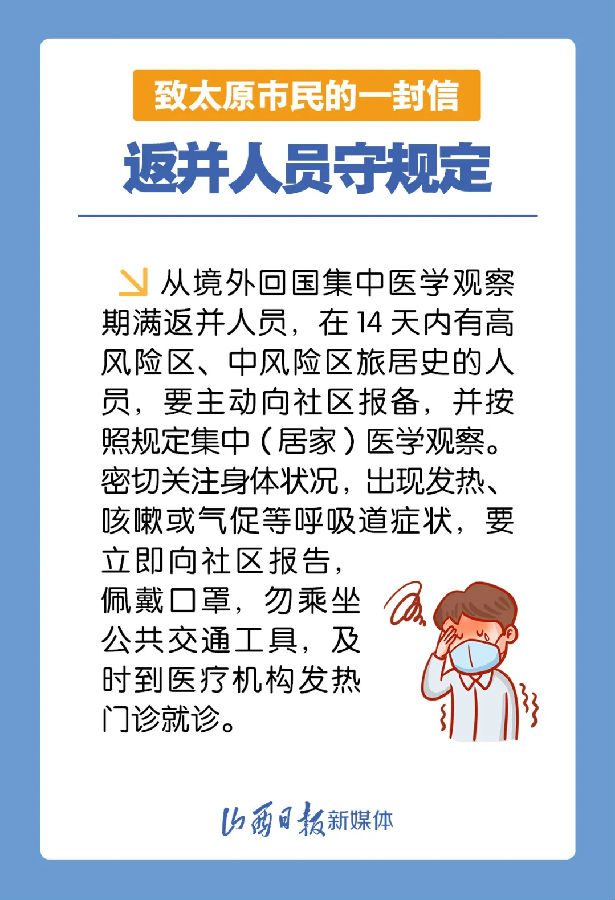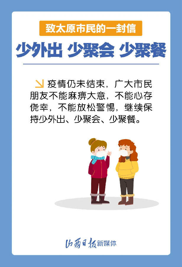 當前,新冠肺炎疫情在全球擴散蔓延,國內部分地區出現了境外輸入關聯聚集性疫情,太原市疫情輸入風險不斷加大,防控形勢依然嚴峻復雜,防控工作仍任重道遠。