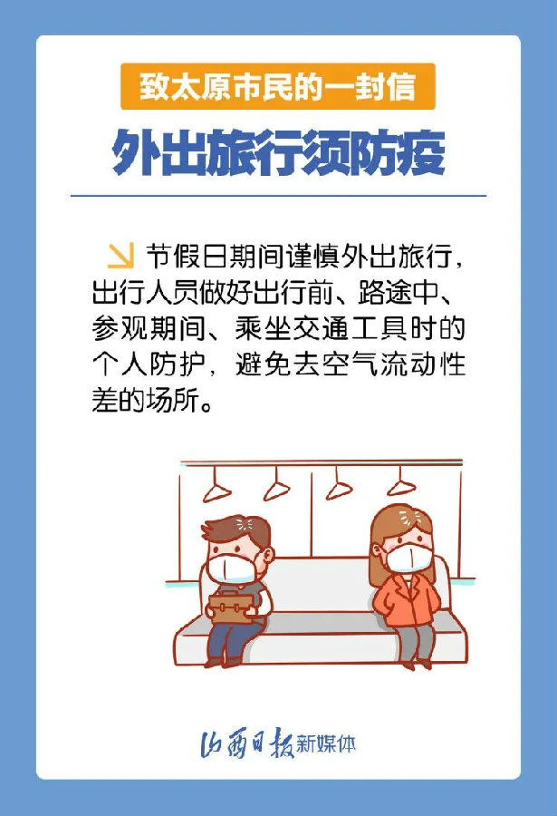 時逢“五一”假期來臨,太原市疫情防控領導小組辦公室向市民們發出一封信,提出倡議,注重健康安全。
