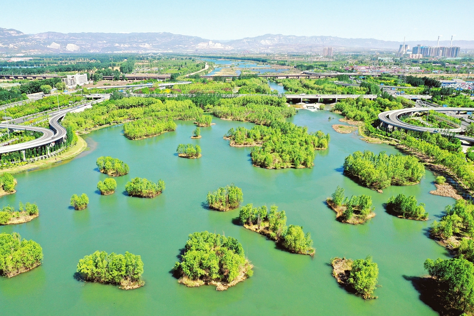 黃河山西段流經4市19縣,總長965公里,占黃河總長度的1/6。經過多年堅持不懈治理,汾河太原城區段良好生態環境與城市基礎建設相得益彰,成為現代都市一條生態長廊。下一步,太原市將加快實施汾河四期濕地建設,讓汾河景區繼續北延約10公里,使汾河太原城區段實現全生態治理。圖為5月16日拍攝的太原汾河濕地公園。 記者李兆民攝