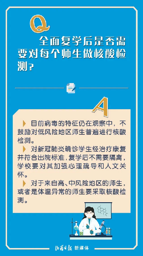為進一步做好教育系統全學段全面復學復課和疫情防控工作,近日,教育部召開學校疫情防控專家咨詢視頻會。來自北京大學、中國疾控中心、北京中醫藥大學等院校機構的8位專家接受咨詢,就返校復學防疫工作事項給出了最新的建議。