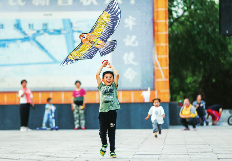 把增進人民福祉、促進人的全面發展作為一切工作的出發點和落腳點,是高質量發展的價值體現。山西省稷山縣打造富有稷山特色的魅力城市,建設集生態、休閑、娛樂為一體的綠色生態公園,進一步提升市民游園的獲得感幸福感。圖為2020年5月16日,稷山縣民樂園廣場不少市民帶著孩子前來游玩,感受初夏好時光。 人民圖片史云平攝