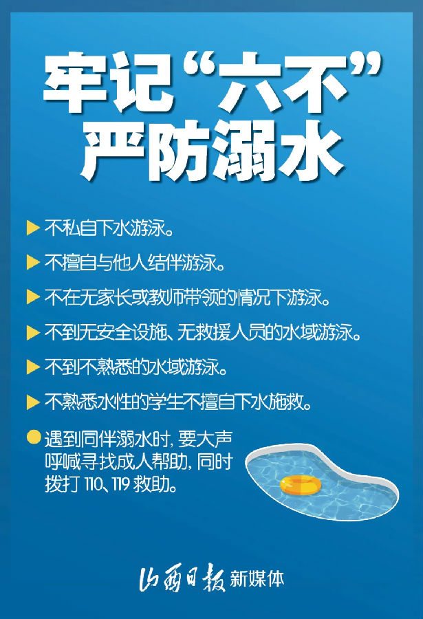 2020 年汛期和暑期已至。為守護學生生命安全,山西省教育廳制定了《2020 年中小學生幼兒汛期和暑期安全提示十二條》,教育學生遵守安全規范,遠離危險場所,規避安全風險。同時,提醒家長依法履行監護責任,加強對孩子的看護和教育,積極營造安全和諧的生活氛圍,確保中小學生和幼兒暑期平安健康。