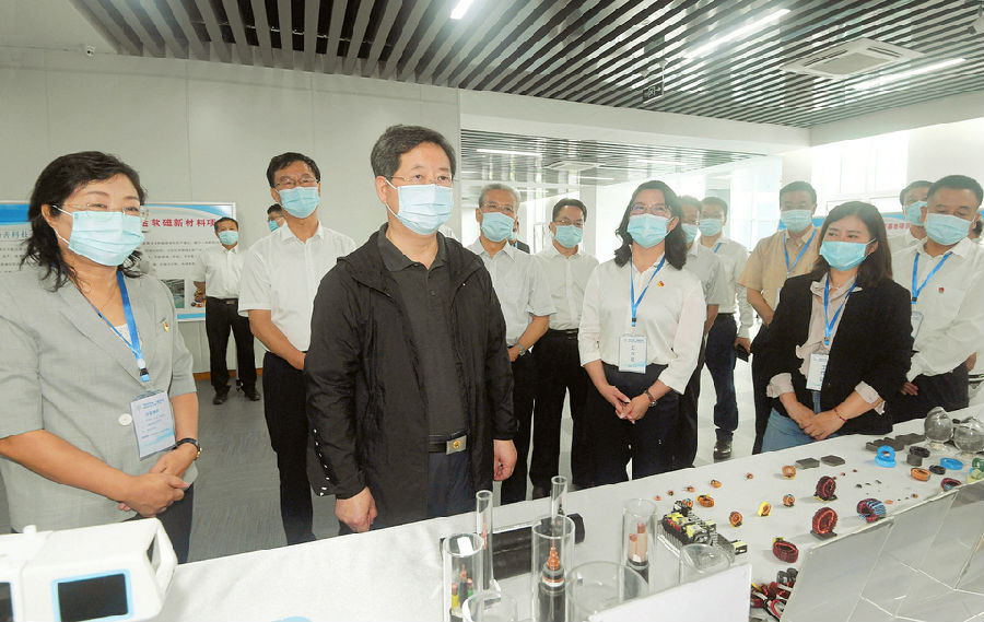 八月十七日,省委書記樓陽生在呂梁經(jīng)濟(jì)技術(shù)開發(fā)區(qū)數(shù)字經(jīng)濟(jì)產(chǎn)業(yè)園察看入駐企業(yè)產(chǎn)品展示。本報記者史曉波攝