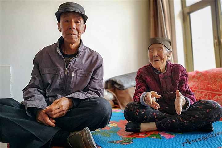 105歲的龐玉英坐在新家的炕上,向前來看望她的鄉(xiāng)村干部拱手致謝。雖然耳朵有點(diǎn)背,也不大能說清楚話,但她眼睛發(fā)亮,滿臉笑容。