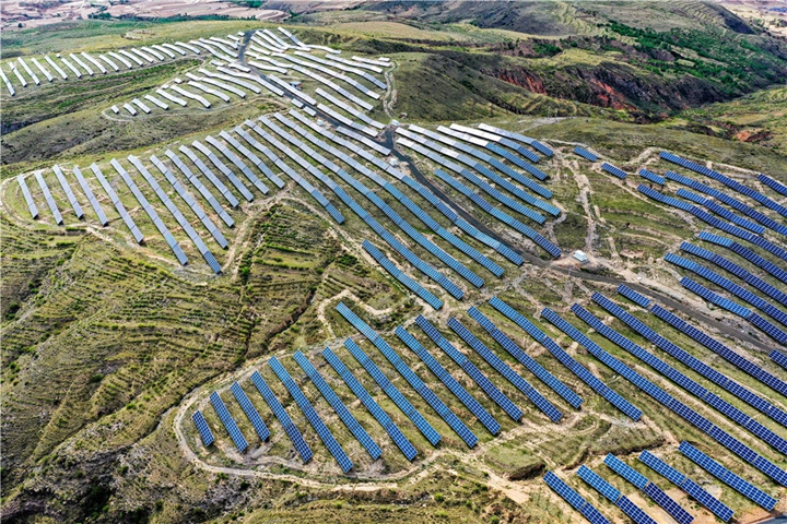 這是位于山西省大同市天鎮(zhèn)縣賈家屯鄉(xiāng)將軍廟村的光伏電站(2019年5月22日攝,無人機(jī)照片)。新華社記者 曹陽 攝