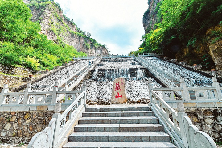 走進藏山景區,長長階梯順山勢而建,潺潺流水似有千年歷史流淌。