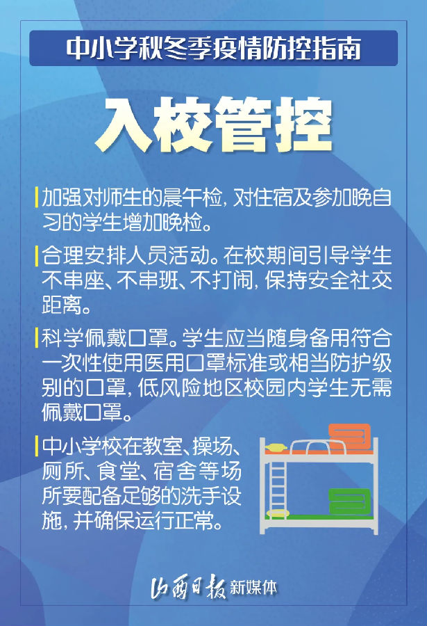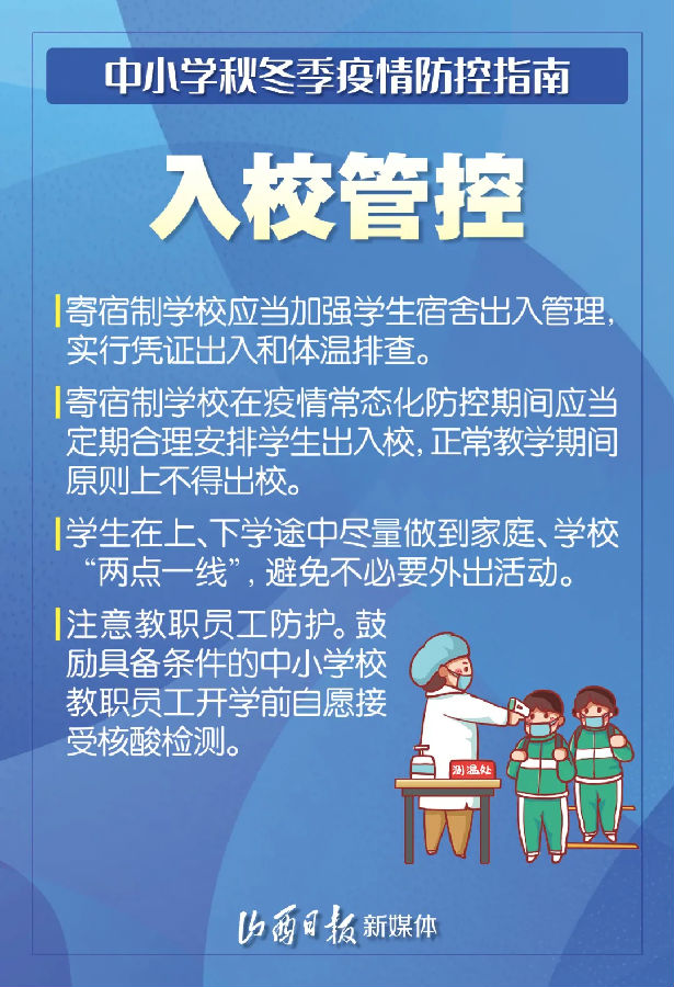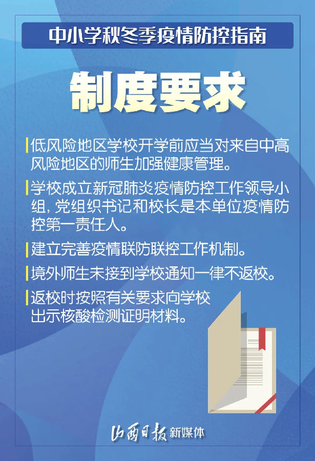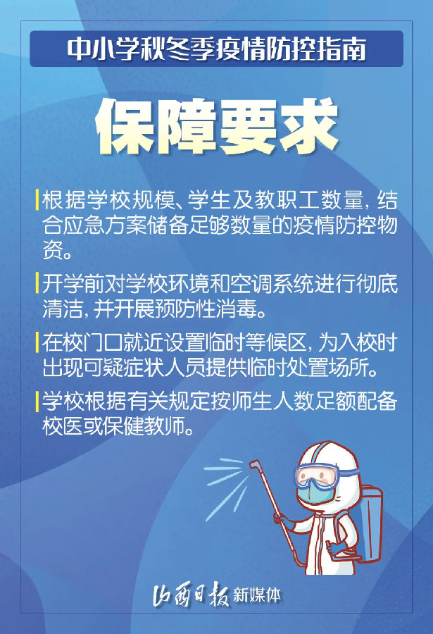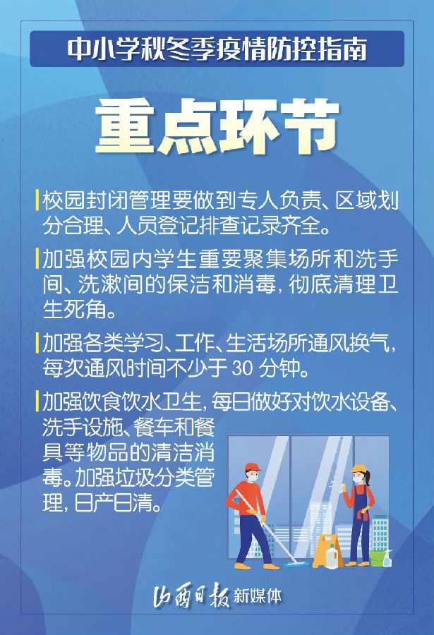 開學前學校要做好哪些防疫準備?在校期間師生如何做好個人防護……開學時間日益臨近,中小學校防疫規(guī)定備受關注。8月中旬,國家衛(wèi)健委及教育部發(fā)布了《秋冬季新冠肺炎疫情防控技術方案(更新版)》,家長們最關心的問題都在這里!