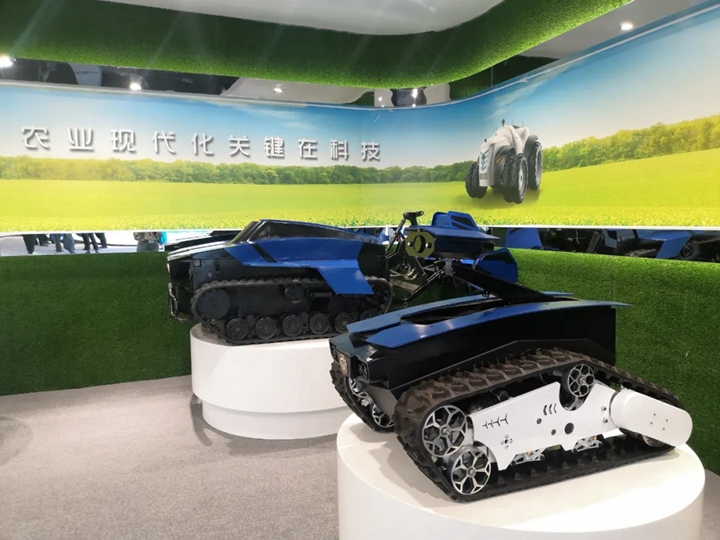 ▲科創基地展示的無人駕駛拖拉機、智能巡檢機器人等裝備,可大幅提高工作效率