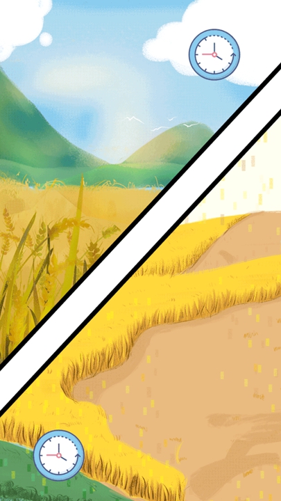 收割機直接將稻穗與稻莖分離出來,1畝需要10分鐘,10畝需要100分鐘。而不適合大型機械工作的地方,農民需要將水稻一束一束,用鐮刀割下,再扎起,一般來說,收割1畝需要6個小時,10畝則需要60個小時。