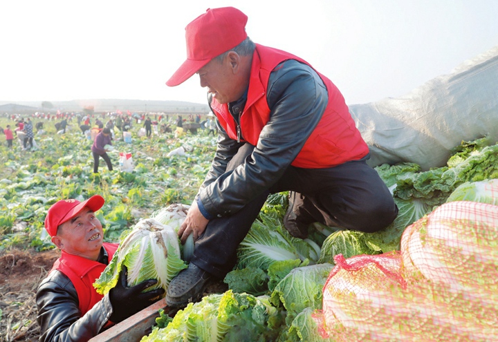 長治市新時代文明實踐志愿者幫助農民收獲蔬菜。