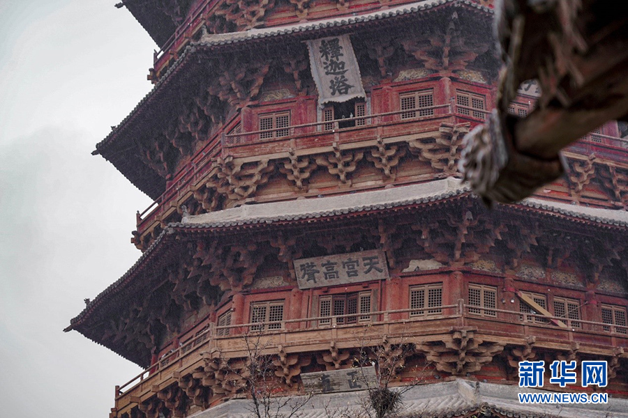 從外表看,木塔第一層立面重檐,以上各層均為單檐,共五層六檐。實際上,各層間夾設暗層,實為九層。新華網 發