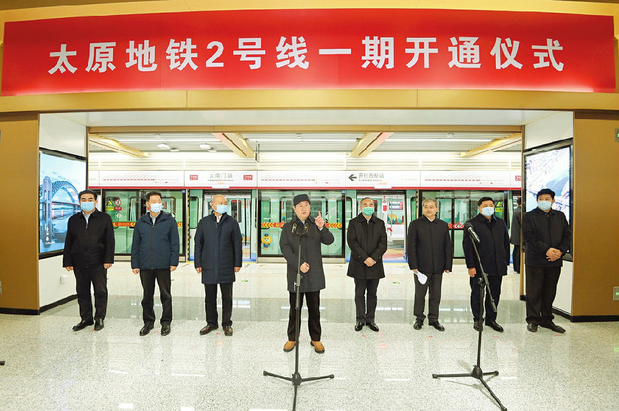 12月26日上午,太原地鐵2號線一期開通運營,省委書記樓陽生講話并宣布地鐵開通。 本報記者李聯軍攝