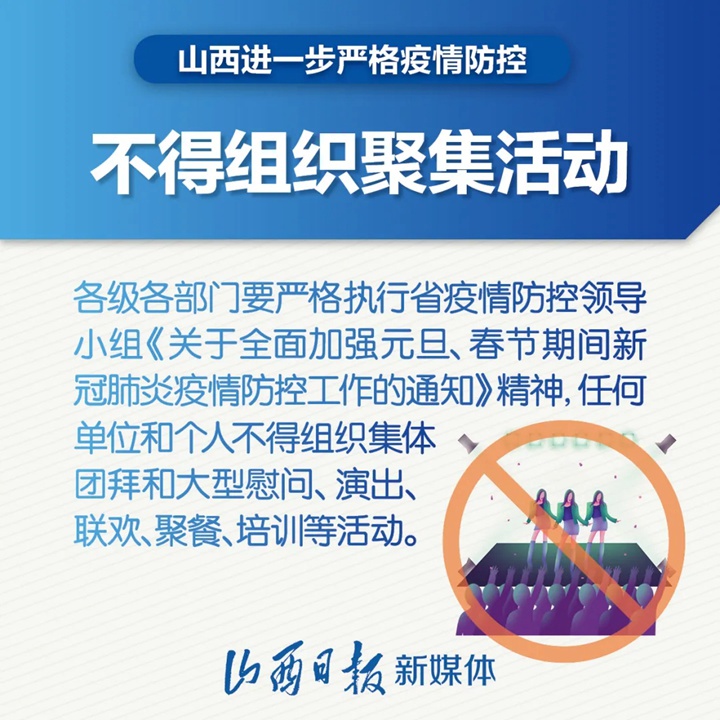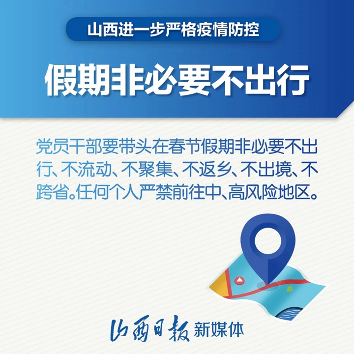 當(dāng)前,正值疫情防控的關(guān)鍵時(shí)期,為切實(shí)扎緊扎牢防輸入、防擴(kuò)散、防反彈的防線,堅(jiān)決打贏疫情防控阻擊戰(zhàn),嚴(yán)防死守“山西陣地”,鞏固我省疫情防控重大戰(zhàn)略成果,保障人民群眾身體健康和生命安全。經(jīng)省疫情防控領(lǐng)導(dǎo)小組同意,決定從即日起,進(jìn)一步嚴(yán)格疫情防控、管控措施。