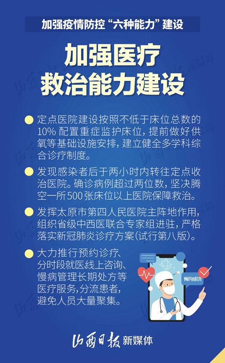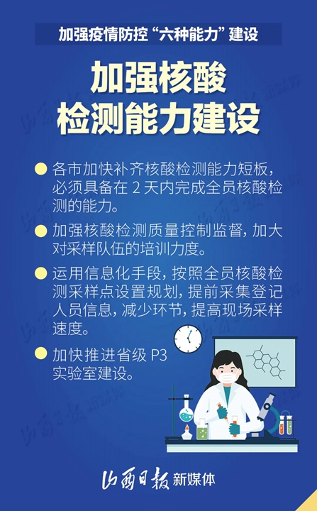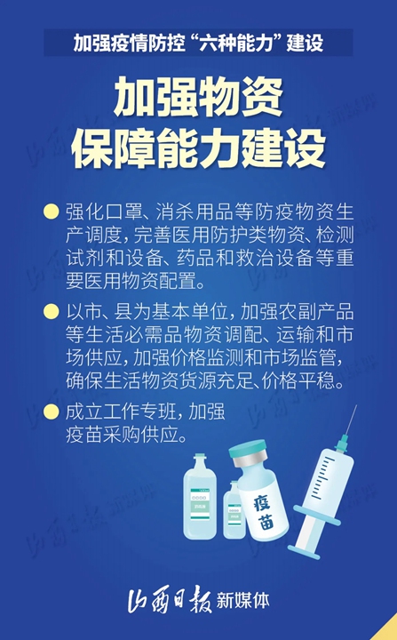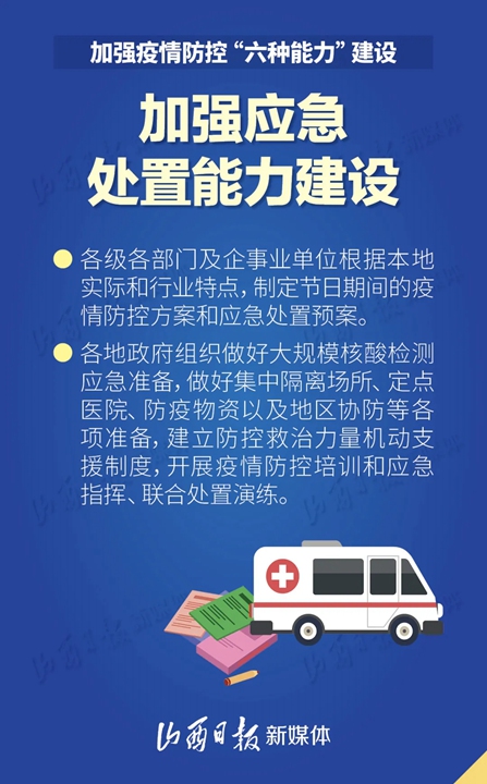 新春將至,為保障全省人民群眾度過一個安全健康的春節,守住不發生疫情蔓延擴散底線,鞏固來之不易的防疫成果。山西省新冠肺炎疫情防控工作領導小組就春節期間疫情防控具體措施提出了加強“六種能力”建設的要求。