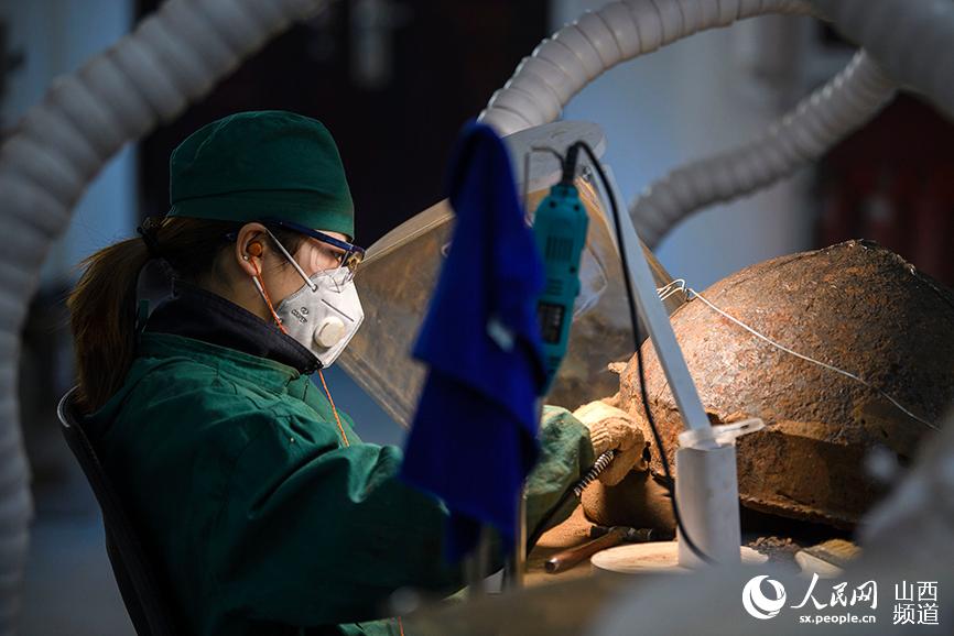 專業(yè)人員在可移動(dòng)文物保護(hù)修復(fù)室工作。 人民網(wǎng)記者 翁奇羽攝
