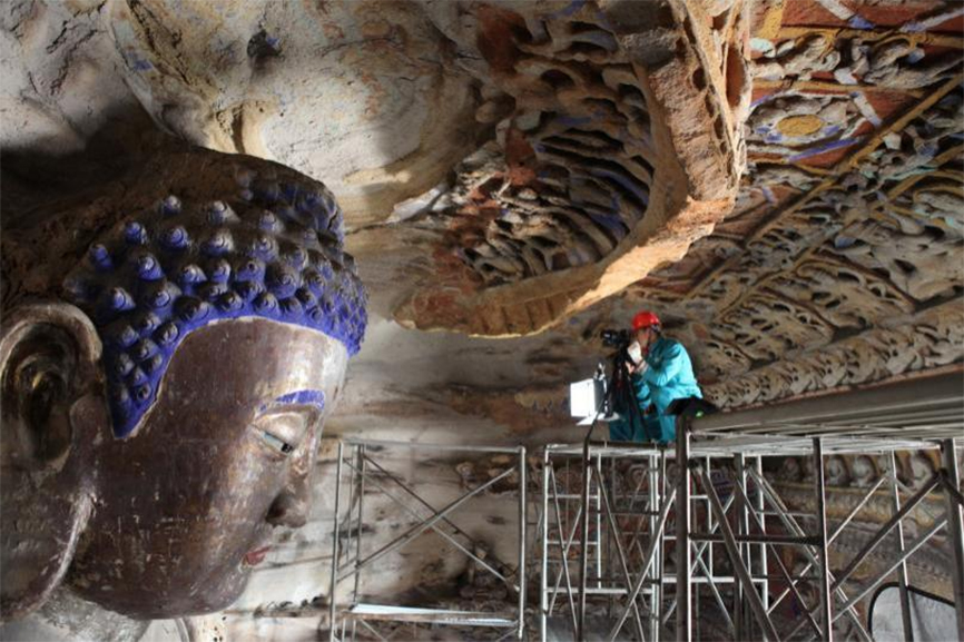 云岡石窟第9窟數(shù)字化采集現(xiàn)場(chǎng)。 云岡研究院供圖