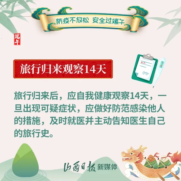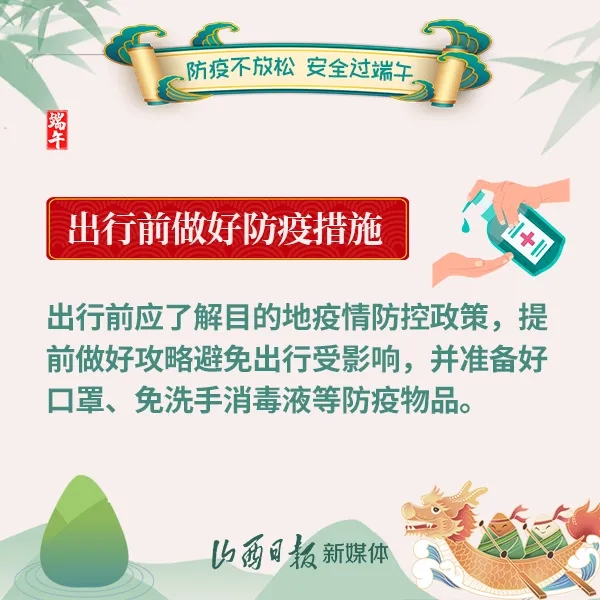 端午節小長假即將來臨,很多人都有著出游的計劃,為保障大家度過一個健康祥和的假期,6條防疫提醒記心中!