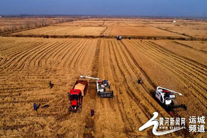 近年來,運城市按照“藏糧于地、藏糧于技”的戰略部署,把保障糧食安全放在突出位置,毫不放松抓好糧食生產,建立黃汾百萬畝糧食優質高產高效示范基地,創建運城現代種業創新平臺、黃河流域生態保護和高質量發展示范區及國家級農業現代化示范區。據悉,運城市今年小麥收獲面積426.16萬畝,比去年的420.7萬畝增幅1.3%;預估畝產363.8公斤,比去年的315.3公斤/畝增產15.3%;預計總產量15.5億公斤,比去年的13.3億公斤增產2.2億公斤。