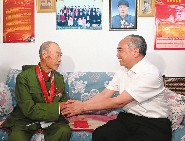 退役軍人老黨員劉生裕,曾獲解放西北紀念章、華北解放紀念章、人民功臣西北解放紀念章等。林武走進劉生裕家中,詢問革命經歷、身體狀況,送上節日祝福,親自為他佩戴“光榮在黨50年”紀念章。林武說,今年是建黨一百周年,習近平總書記和黨中央十分關心老黨員和生活困難黨員,專門作出安排部署,開展走訪慰問活動。今天的好日子,是無數革命前輩流血犧牲、艱苦斗爭換來的。要教育引導全省廣大黨員始終堅持光榮革命傳統,把革命先烈流血犧牲打下的紅色江山守護好、建設好,努力創造不負革命先輩期望、無愧于歷史和人民的新業績。要把做好退役軍人工作作為重要政治任務,加大幫扶力度,全力做好退役軍人保障工作,營造尊崇軍人、關愛退役軍人的社會氛圍。