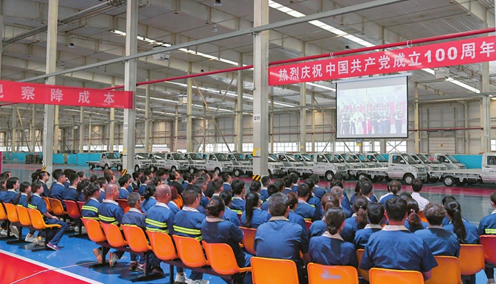 7月1日,山西成功汽車制造有限公司組織黨員群眾收看慶祝中國共產黨成立100周年大會實況。李寧攝