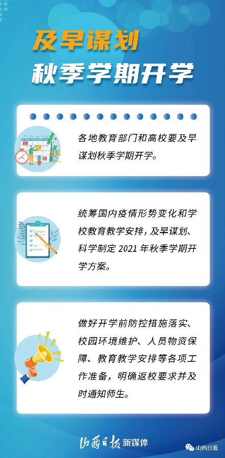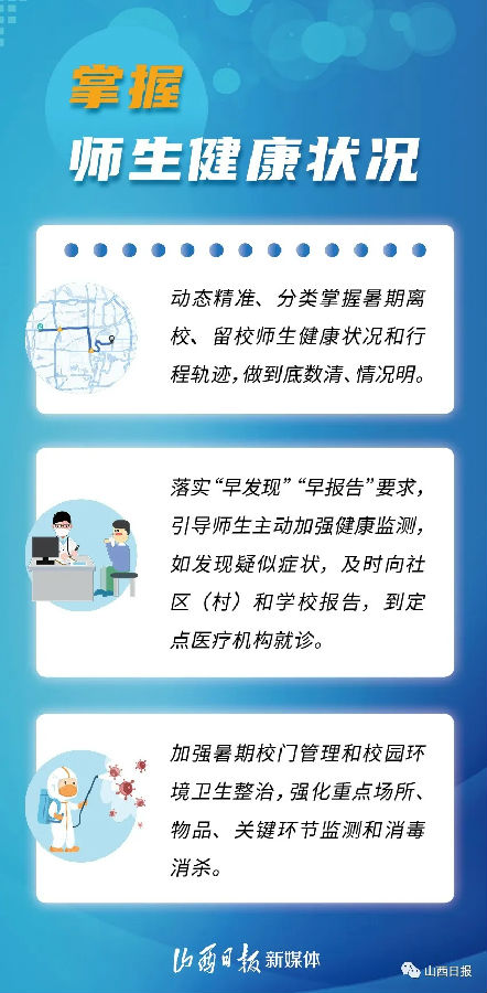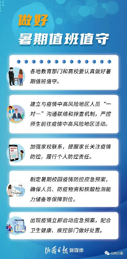 筑牢暑期教育系統疫情防線,確保教育系統安全穩定。為統籌做好2021年暑假期間教育系統疫情防控工作,嚴防疫情輸入和發生聚集性疫情,確保師生生命安全和身體健康,近日,教育部印發通知部署做好暑期教育系統疫情防控工作。
