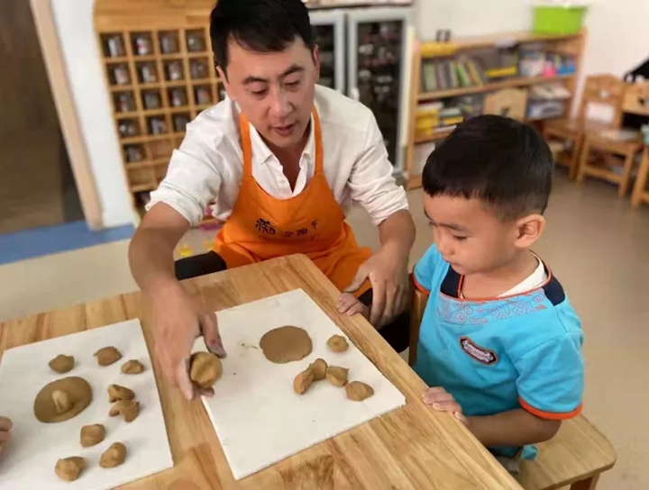 “所以我從小就知道孩子們心里想要什么,發自內心地喜歡和孩子們在一起。從事幼教,首先得愛孩子,再去理解孩子,把自己也當做孩子一樣蹲下身來與其溝通。”耳濡目染間,愛像一顆種子在他心里植根、發芽。