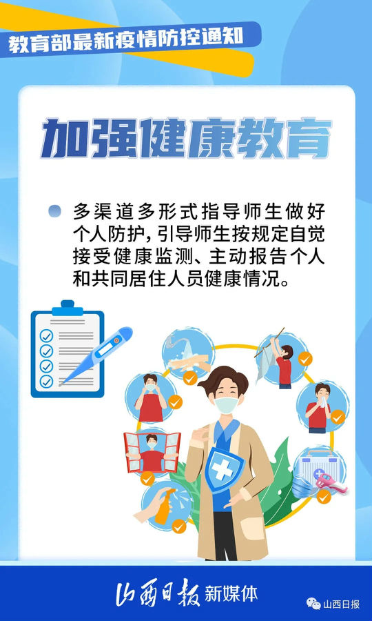 9月14日,教育部印發通知部署進一步從嚴從緊做好中秋國慶假期和秋季學期疫情防控工作。通知要求,各地教育部門和學校要從嚴落實校園疫情防控措施。