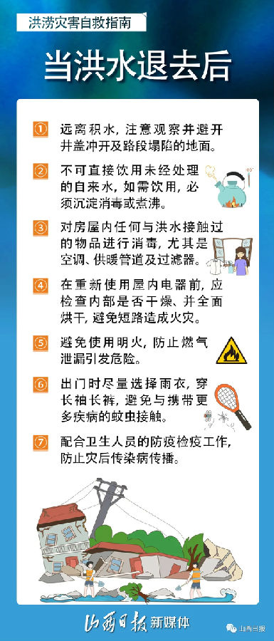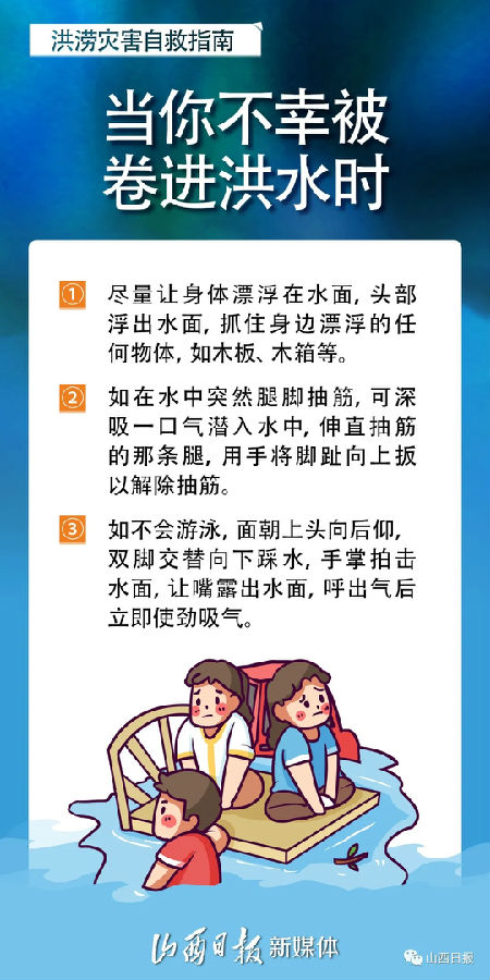 汛期已至,山西多地連續暴雨,部分地區遭受洪水災害。發生洪水時如何保護好自己的人身安全? 這份洪水防范自救手冊,請收好!