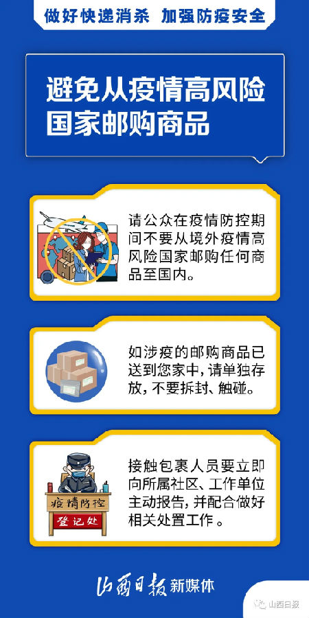 近日,內蒙古二連浩特、河北省晉州市浩匯商貿有限公司相繼出現部分商品、郵件新冠肺炎核酸檢測陽性,接觸境外和國內中高風險地區的郵件包裹存在感染風險。為深入貫徹“外防輸入,內防擴散”的工作方針,堅持“人、物、環境同防”,嚴格防止疫情通過快遞郵件輸入我省,持續保持我省來之不易的疫情防控成果,11月7日,省疾控中心發布提示!