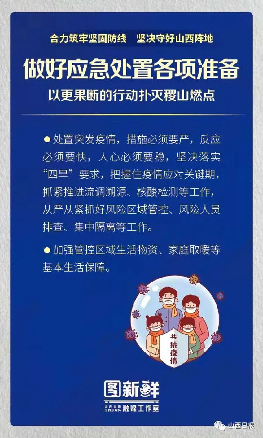 他強調,要認真貫徹習近平總書記關于疫情防控重要指示精神和黨中央決策部署,有效做好疫情燃點應對處置工作,合力筑牢疫情防控堅固防線,堅決守好山西陣地,為全方位推動高質量發展營造良好環境。