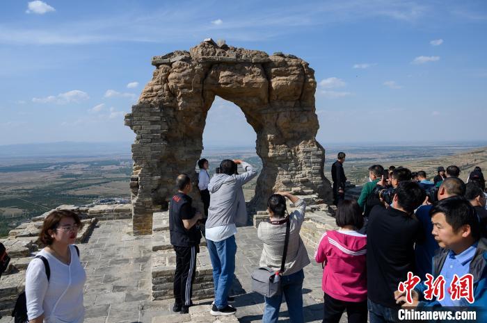 在山西省朔州市山陰縣,無人機航拍廣武明長城,猶如巨龍在崇山峻嶺間蜿蜒盤旋。廣武段長城全長34.6公里,修建于明朝,距今已有六百年之久,是內長城的一部分,屬于長城世界文化遺產。“月亮門”學名十號敵臺“穿心樓”,是廣武明長城最美的一個遺存。
