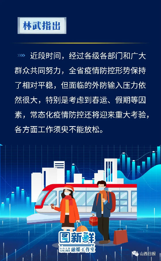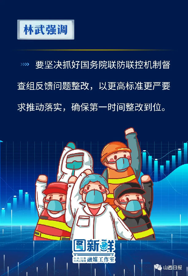 林武強調,要深入貫徹習近平總書記關于疫情防控重要指示精神,進一步健全責任體系、扣緊責任鏈條,進一步細化具體措施、補齊差距短板,不斷提高防控工作的針對性有效性,守好守牢疫情防控各道防線各個關口。
