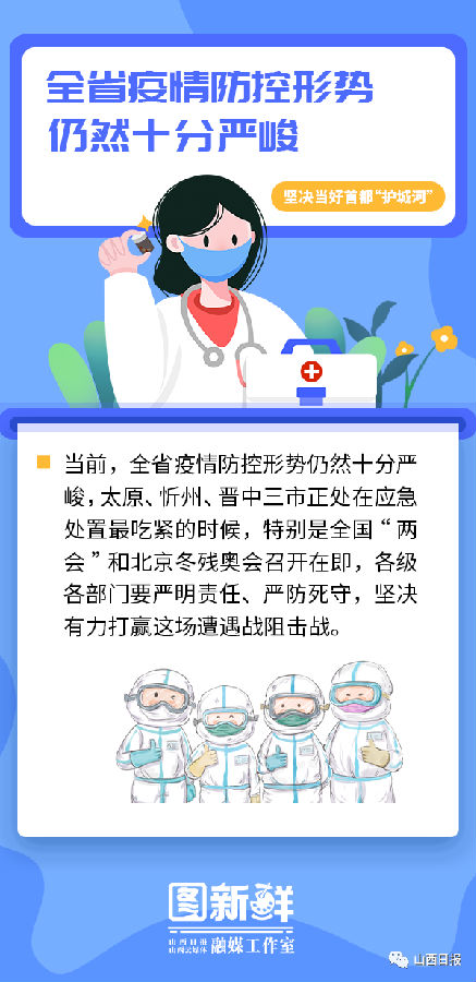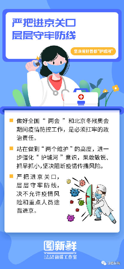 他強調,要堅決貫徹落實黨中央及省委關于疫情防控的部署要求,清醒認識當前疫情防控嚴峻復雜形勢,堅持盡銳出戰、連續作戰,扎實細致做好防輸入、防擴散、防外溢各項工作,確保全國“兩會”和北京冬殘奧會期間全省大局穩定,堅決當好首都“護城河”。