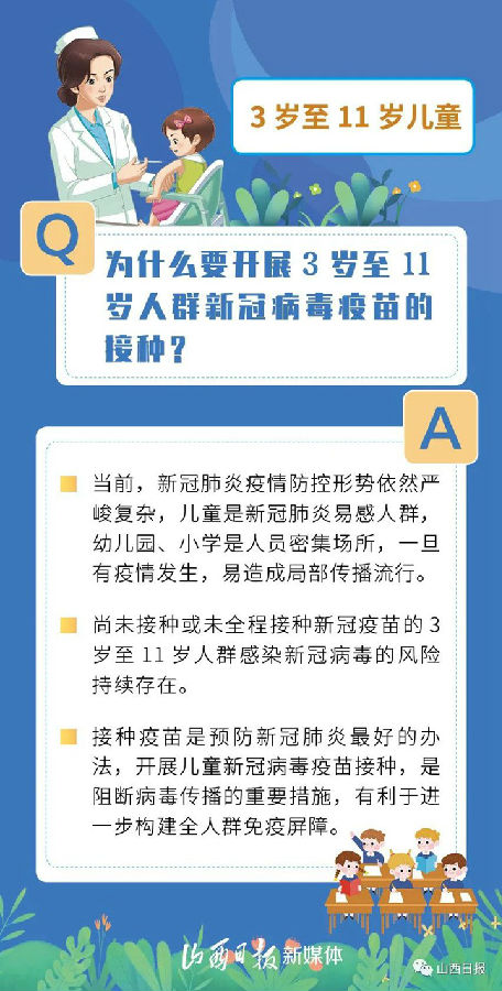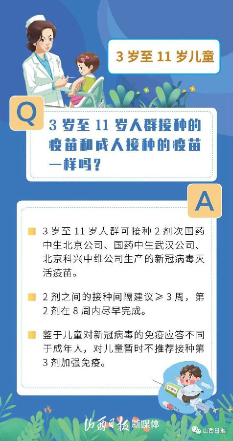 3歲至11歲兒童新冠病毒疫苗能否與其他疫苗同時接種?有基礎疾病的老年人能否接種新冠疫苗?如何選擇加強免疫接種的疫苗?……連日來,受全國新冠肺炎疫情形勢的影響,之前由于各種原因沒有接種疫苗以及需要接種加強針的人群,紛紛前往接種點或撥打電話咨詢相關問題。近日,針對不同人群普遍關注的疑問,山西省疾病預防控制中心相關專家進行了詳細解答。