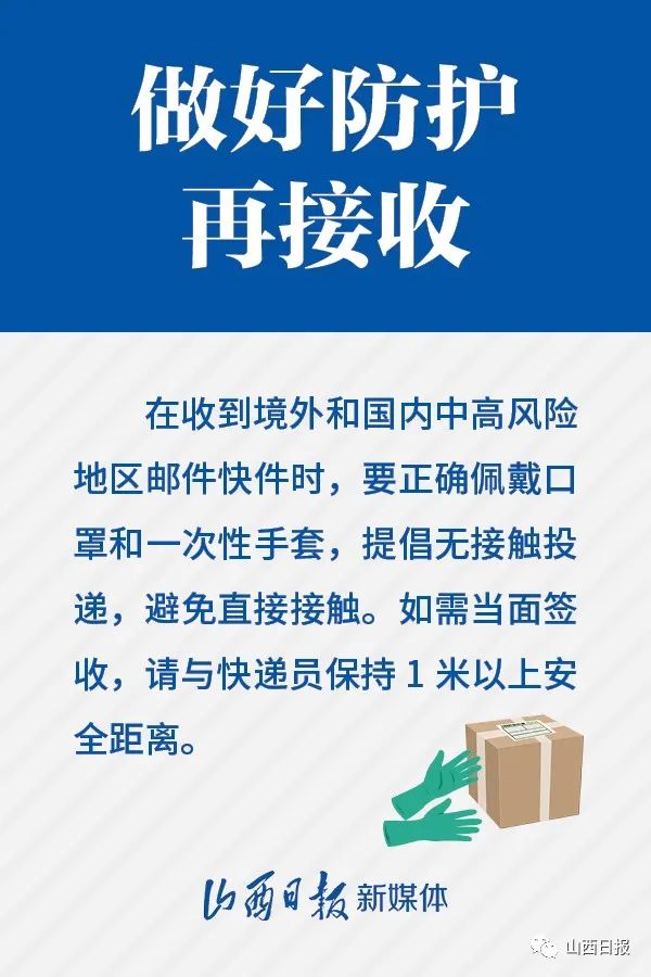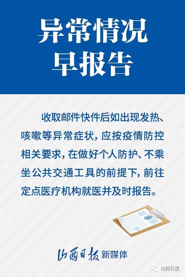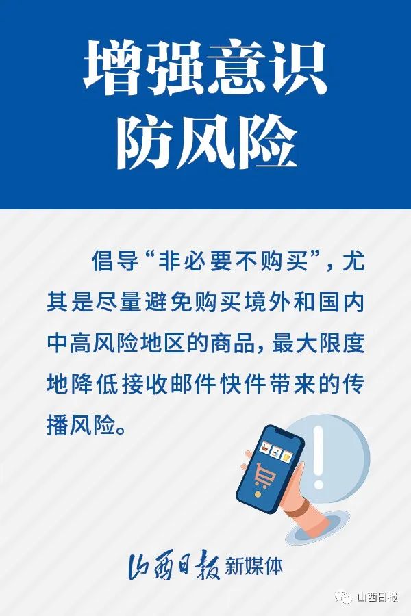 為進一步加強山西省郵件快遞新冠肺炎疫情防控工作,保障用戶的安全,省疫情防控辦在此溫馨提示: