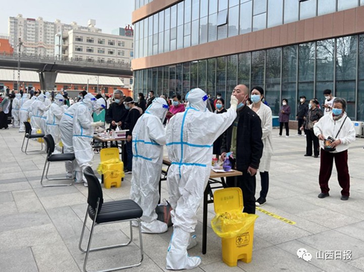 山西日報新媒體記者李倩倩報道 和時間賽跑,與病毒較量。4月11日上午6時30分開始,太原市迎澤區(qū)開展區(qū)域核酸檢測,徹底排查潛在人群感染者。“大白”群體迎難而上、志愿者群體踴躍響應(yīng)、群眾檢測有序有愛有速度......一些溫暖的“群”,活躍在全區(qū)346個核酸采樣點(diǎn)上,讓核酸采樣現(xiàn)場變得暖心而有力量。