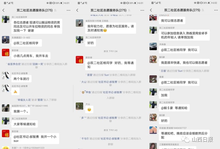 4月10日下午,迎澤區(qū)多個社區(qū)以微信群的形式,展開疫情防控志愿者的招募工作,通知發(fā)布后,各個微信群里的居民紛紛響應(yīng),報名參加志愿服務(wù)。