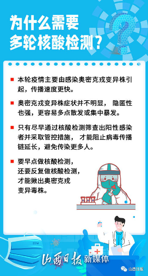 為何要進行一輪又一輪的大規模核酸檢測?核酸檢測結果是陰性的居民,為何也被要求反復進行核酸檢測?參加大規模核酸檢測時要注意什么?針對這些問題,看下面解釋分析。