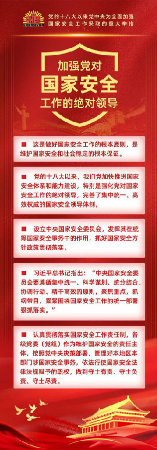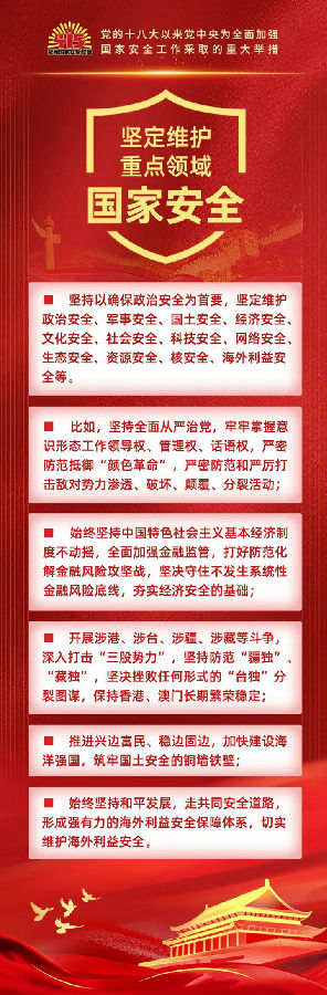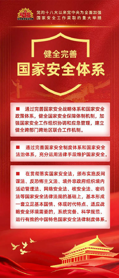 今年4月15日是第七個(gè)全民國家安全教育日,主題是“樹牢總體國家安全觀,感悟新時(shí)代國家安全成就,為迎接黨的二十大勝利召開營造良好氛圍”。黨的十八大以來,黨中央為全面加強(qiáng)國家安全工作采取了一系列重大舉措。