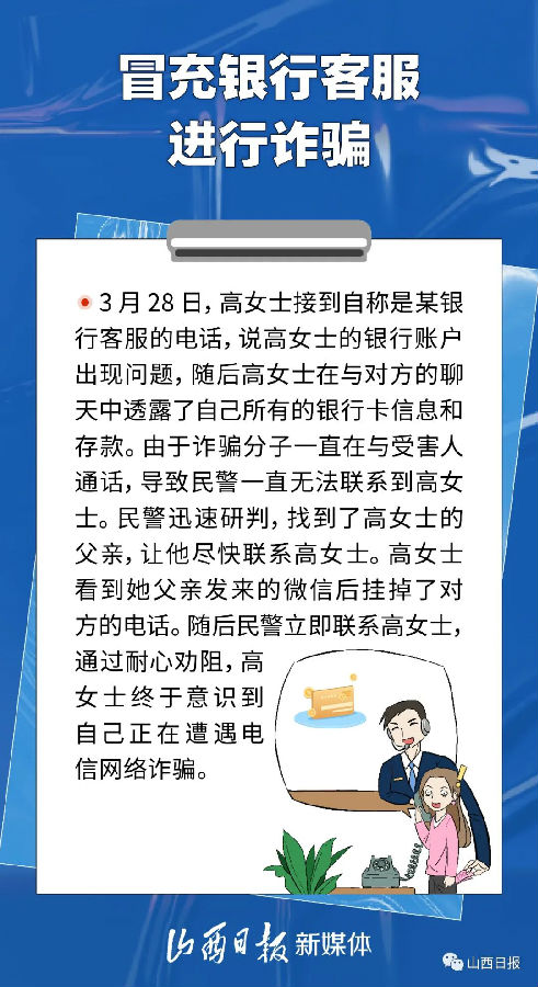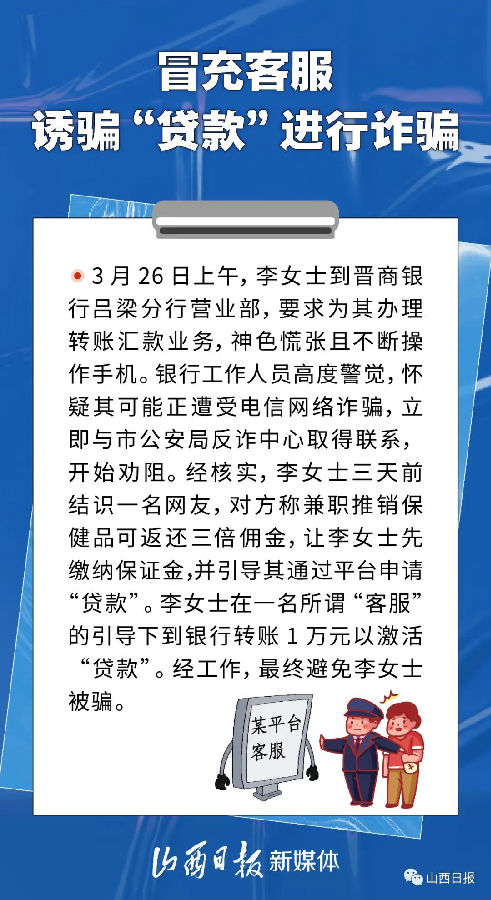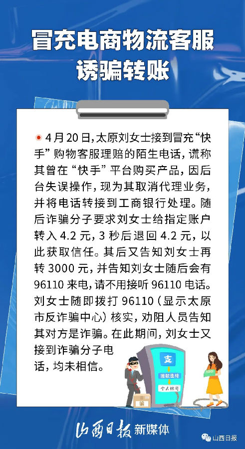 網(wǎng)絡(luò)刷單返利、虛假投資理財、冒充電商物流客服、冒充領(lǐng)導(dǎo)……近年來,以電信網(wǎng)絡(luò)詐騙為代表的新型網(wǎng)絡(luò)犯罪已成為主流犯罪,并且伴隨社會形勢發(fā)展和社會熱點,詐騙手法不斷迭代更新。日前,山西發(fā)布了10起預(yù)警勸阻電信網(wǎng)絡(luò)詐騙典型案例,讓我們通過其中的一些案例,提高防范電信網(wǎng)絡(luò)詐騙的風(fēng)險意識。