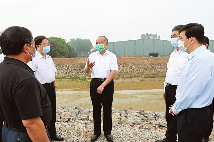 七月十四日,省委書記林武在汾河二級支流烏馬河清徐縣208國道橋段,聽取水毀段修復治理情況匯報,強調(diào)要全面加強流域綜合治理,進一步提升防大汛、抗大洪的能力。記者史曉波攝