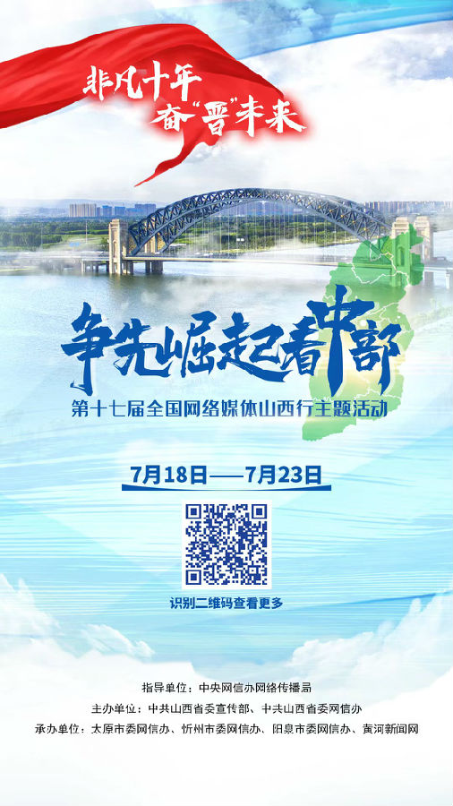 今天,依偎著黃河水的奔騰、太行山的雄壯,依偎著黃土高原的厚重和華夏文明的滋養(yǎng),山西這片古老又年輕的土地,正澎湃著全方位推動高質(zhì)量發(fā)展的強勁節(jié)拍,奮力譜寫著全面建設(shè)社會主義現(xiàn)代化國家的山西篇章!在這樣的重要時刻,來自全國的網(wǎng)絡(luò)媒體齊聚山西,共同參與“爭先崛起看中部”——第十七屆全國網(wǎng)絡(luò)媒體山西行主題活動,他們將深入山西高質(zhì)量發(fā)展的一線,用筆和鏡頭記錄下這強勁節(jié)拍、動人畫卷。